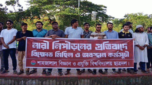 ঢাকা বিশ্ববিদ্যালয়ের (ঢাবি) নারী শিক্ষার্থী ও ডাকসু প্রার্থী বিএম ফাহমিদা আলমকে প্রকাশ্যে গণধর্ষণের হুমকির প্রতিবাদে বিক্ষোভ মিছিল ও অবস্থান কর্মসূচি পালন করেছে শাহজালাল বিজ্ঞান ও প্রযুক্তি বিশ্ববিদ্যালয় (শাবিপ্রবি) শাখা ছাত্রদল। আরো পড়ুন