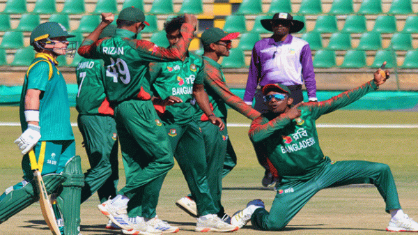 হারারেতে আজ ত্রিদেশীয় সিরিজের ফাইনালে দক্ষিণ আফ্রিকার বিপক্ষে মাঠে নামবে বাংলাদেশ অনূর্ধ্ব-১৯ দল। ফাইনালের আগে লিগ পর্বে তিনবার মুখোমুখি হয়েছিল দুই দল। তিন ম্যাচের দুটিতে জিতেছেন বাংলাদেশের যুবারা। আরেকটিতে জয়