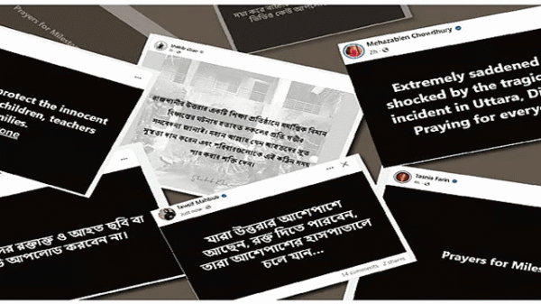 রাজধানীর উত্তরায় মাইলস্টোন স্কুল অ্যান্ড কলেজে যুদ্ধবিমান বিধ্বস্তের ঘটনায় শোকাহত পুরো দেশ। ছোট ছোট বাচ্চা শিক্ষার্থী, শিক্ষকদের মৃত্যুর এ মর্মান্তিক ঘটনা মেনে নিতে পারছে না কেউই। এমন হৃদয়বিদারক ঘটনায় গভীর