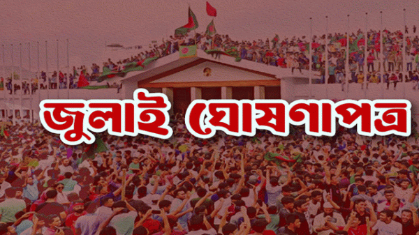অন্তর্বর্তীকালীন সরকার বহুল প্রতীক্ষিত জুলাই ঘোষণাপত্রের খসড়া চূড়ান্ত করেছে । আগামী ৫ আগস্ট (মঙ্গলবার) বিকেল ৫টায় আনুষ্ঠানিকভাবে এই ঘোষণাপত্র জাতির সামনে উপস্থাপন করা হবে। তথ্য অধিদপ্তরের এক বিজ্ঞপ্তিতে বলা হয়েছে,