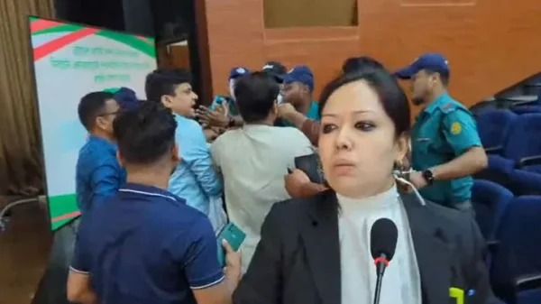 বেলা ডেস্ক: নির্বাচন কমিশনে ব্রাহ্মণবাড়িয়া-২ ও ৩ আসন নিয়ে শুনানিকালে বিএনপি নেতা ব্যারিস্টার রুমিন ফারহানার উপস্থিতিতে জাতীয় নাগরিক পার্টির (এনসিপি) নেতাকর্মীদের মারধর করা হয়েছে বলে অভিযোগ উঠেছে। রবিবার (২৪ আগস্ট)