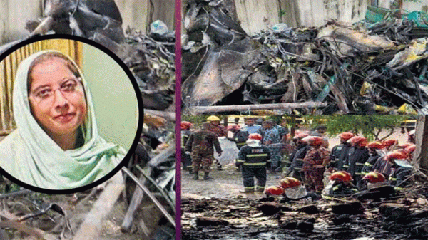 রাজধানীর উত্তরায় মাইলস্টোন স্কুল অ্যান্ড কলেজের একটি ভবনে বিমানবাহিনীর প্রশিক্ষণ বিমান বিধ্বস্তের ঘটনায় নিজের জীবনের ঝুঁকি নিয়ে ২০ শিশু শিক্ষার্থীকে বাঁচিয়েছিলেন শিক্ষক মাহরিন চৌধুরী (৪২)। অবশেষে তিনিও চলে গেলেন না